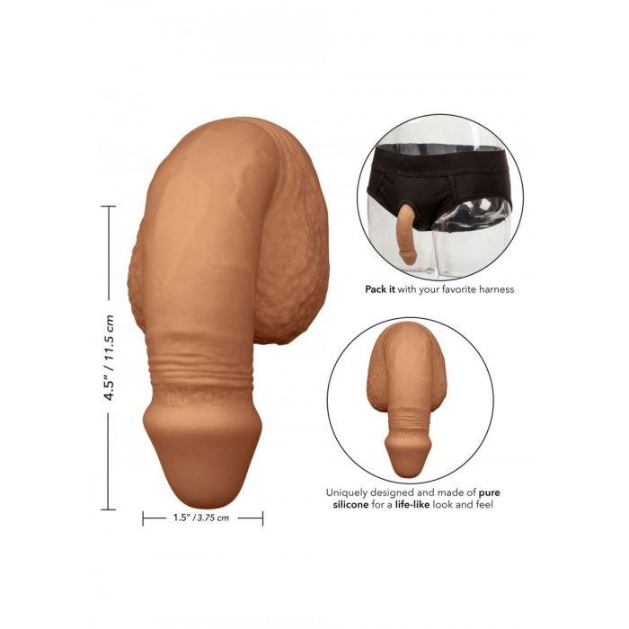 Ben je op zoek naar een realistische penis voor in je Packer Gear Brief? Dan is deze siliconen caramel Packing Penis van CalExotics perfect voor jou! Geniet van het super realistische gevoel van deze penis in je Packer Gear slip en laat al je fantasieën werkelijkheid worden. Deze Female to Male Gear realistische penis is gemaakt van pure siliconen en 12,75 cm lang. De kunstpenis heeft alle kenmerken van een echte penis: van een realistische eikel tot levensechte balzak. Deze Packing Penis is zeer flexibel en buigzaam en voelt aan als het echte werk. Dit speeltje is volledig bodysafe, waterproof en past in elke slip van Packer Gear. Geniet waar en wanneer je maar wilt van deze realistische Packing Penis en voel je mannelijker en stoerder als ooit tevoren.