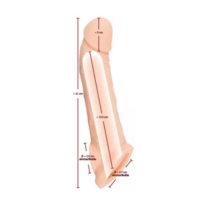 De Penissleeve van het bekende merk Size Matters verlengt jouw penis met maar liefst 5 cm. De solide top van de sleeve is tevens licht gebogen zodat hij al je lovers gevoelige spots weet te behagen. Ook verdikt de sleeve je penis een beetje. De sleeve is super flexibel en lekker rekbaar. Het TPE materiaal voelt aan als een tweede huid, zelfs de schacht is geaderd wat zorgt voor extra sensatie tijdens de penetratie. De Penissleeve heeft twee openingen; één voor je penis en aan de onderkant nog één voor je balzak. Zo kan hij nooit afglijden, zelfs niet tijdens wilde, hete nachten....