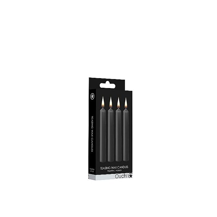 Willen jij en je partner het bdsm spel wat gaan uitbreiden? Dan is een sm kaars de perfecte keuze. Deze SM Kaarsen 4-Pack - Zwart van Ouch is een geweldige set kaarsen die jij over je partner heen kan laten druppelen voor een kinky en heet gevoel. De kaarsen branden op lage temperatuur (50 graden) zodat de huid niet verbrand maar zal net dat beetje extra pijn geven waar jouw sub zo naar verlangd.