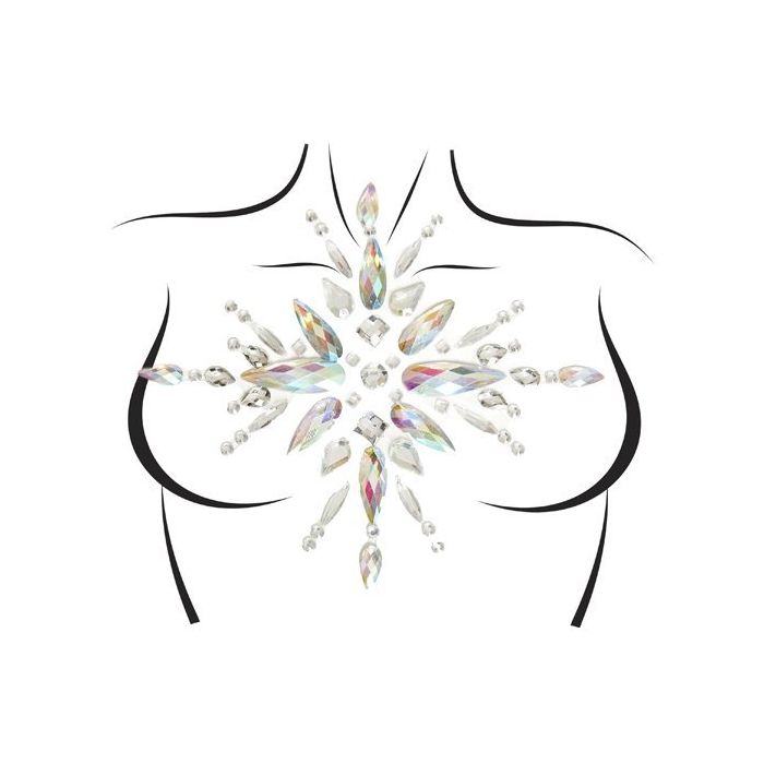 Ga jij deze zomer alle festivals bij langs, of ga je naar een strandfeest met minimalistische dresscode? Dan is de Soleil Body Jewels Sticker echt een accessoire voor jou! Deze sticker heeft een transparante ondergrond waarop transparante steentjes en transparante mulitkleur steentjes zijn aangebracht, die zullen schitteren in de zon. De sticker is gemakkelijk in 1x aan te brengen. Met deze sticker maak je iedere doorschijnende party outfit compleet.