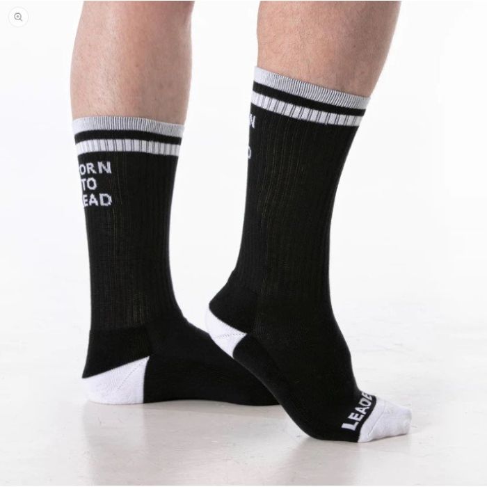 De Sport Sokken Born To Lead - Zwart zijn perfect voor de zelfverzekerde jongeman die graag zijn grenzen verlegt. Deze crew lengte sokken zijn gemaakt van gekamd katoen, wat zorgt voor een zachte en comfortabele pasvorm. De gevoerde zolen bieden extra comfort tijdens het sporten of gewoon tijdens dagelijkse activiteiten. De geribbelde manchetten zorgen ervoor dat de sokken goed op hun plaats blijven zitten. Daarnaast is de vocht absorberende stof ideaal om je voeten droog en fris te houden. De sterke fetish-look van deze sokken geeft je outfit een stoere uitstraling. De Loaded-collectie is speciaal ontworpen voor mannen die graag hun eigen stijl willen laten zien en grenzen willen verleggen. Met deze sokken ben je gegarandeerd disruptief in jouw stijl en klaar om te laten zien dat je Born To Lead bent.