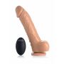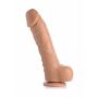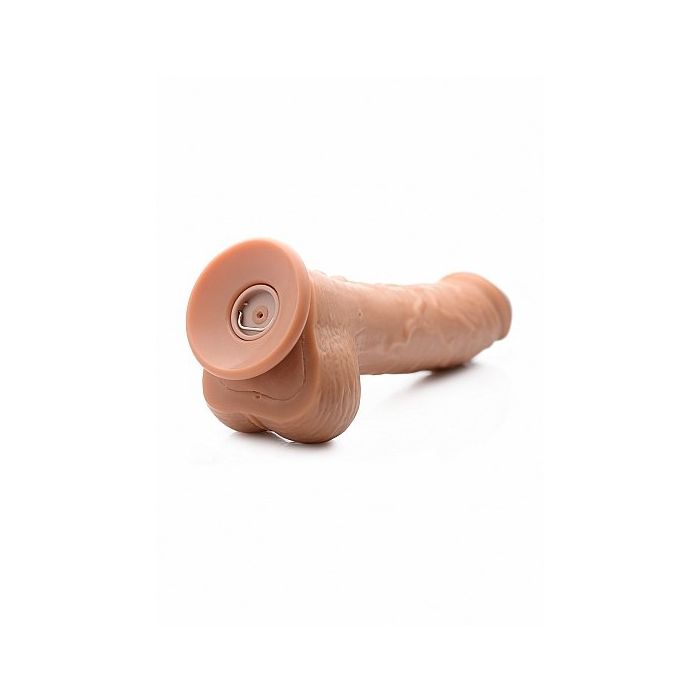 De spuitende en vibrerende dildo met getinte huidskleur van XR Brands is niet alleen zeer realistisch in gebruik, maar voelt ook aan als een echte penis. Het TPR materiaal is zacht en comfortabel op de huid. De grote realistische eikel duwt zich een weg bij je naar binnen terwijl de geaderde schacht voor extra stimulatie zorgt. De balzak maakt het levensechte design helemaal af. Met een lengte van ruim 21 cm (16,75 cm inbrengbaar) en diameter van 4,5 cm zorgt de dildo voor een diep en vol gevoel. Met de draadloze afstandsbediening kun je gemakkelijk de 10 verschillende vibratiestanden regelen.