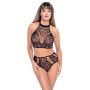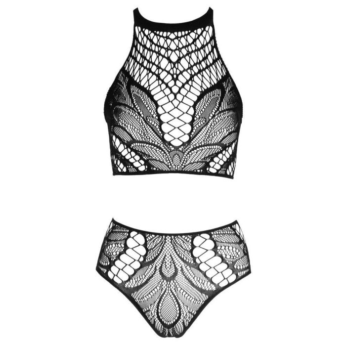 Voel je sexy en verleidelijk in deze 2-delige set met ingeweven netstructuren. De set bestaat uit een haltertop en een kruisloos slipje. De haltertop heeft sensuele elastische banden op de rug voor een opwindend effect. Ondertussen staat het hoog uitgesneden slipje met open kruis klaar voor intieme spontantiteit. De gehele set is volledig naadloos en elastisch zodat je dé perfecte pasvorm creëert. Daarnaast is de 2-delige set gemaakt van hoogwaardige stoffen waardoor het zacht aanvoelt op de huid en het een hoog draagcomfort heeft.