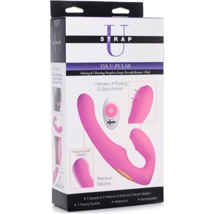 Met deze Strap-on U-Pulse Strap U geniet jij samen met je partner van de heerlijke vibraties.De U-Pulse is anatomisch vormgegeven en kan perfect zonder harnas worden gedragen. De drager kan haar partner penetreren met sterke vibraties en pulsaties maar wordt tegelijkertijd ook zelf gestimuleerd dankzij de 7 verschillende clitoris stimulaties. Je kunt de 5 vibratiestanden en 3 verschillende snelheden, gemakkelijk bedienen met de meegeleverde draadloze afstandsbediening of op het speeltje zelf.