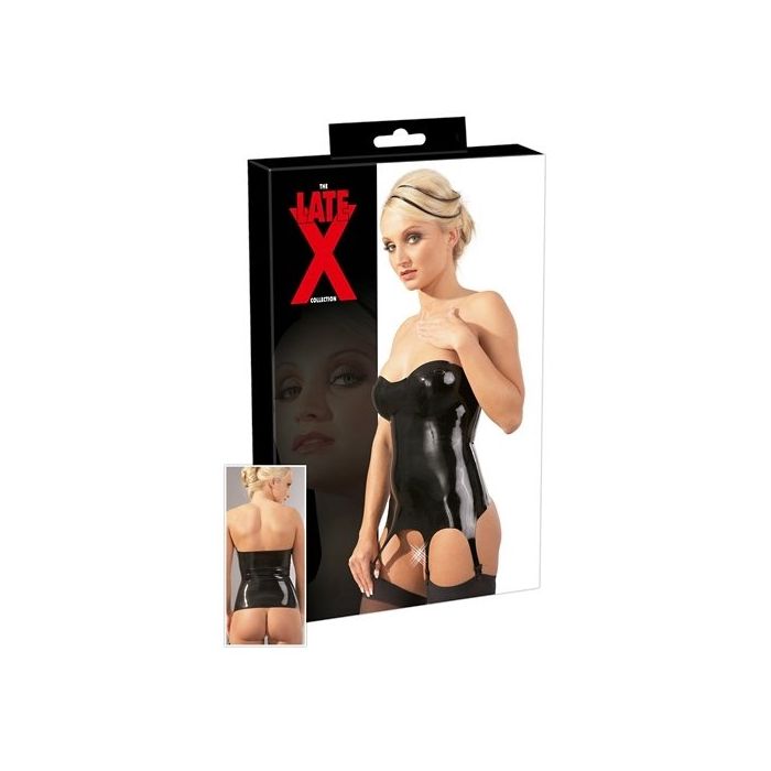 Een verleidelijk strapless jarreltopje van het merk LateX gemaakt van latex voor een onweerstaanbaar uiterlijk. Het materiaal is rekbaar en voelt aan als een tweede huid. Het topje heeft aan de voorkant 4 jarretelbandjes. De achterkant is open waardoor het nog sexier wordt.