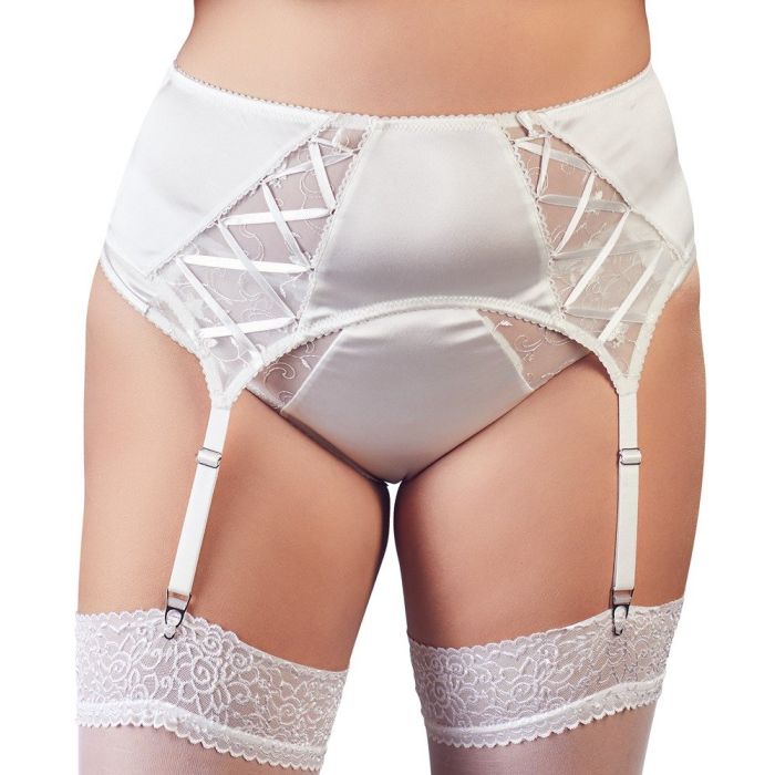 Wil jij jouw spannende lingerie outfit helemaal compleet maken? Dan kan deze witte strapsgordel van het merk Cottelli Collection niet ontbreken. Deze plus size strapsgordel is in meerder maten verkrijgbaar en bevat 4 verstelbare strapbandjes. Hier kun je je sexy kousen zo hoog of zo laag je maar wilt aan bevestigen. De zachte stof van deze strapsgordel is heel comfortabel om te dragen en is erg rekbaar. Hierdoor heeft hij een mooie pasvorm. De rijgdetails aan de voorkant maken je sexy look helemaal af. Verras hem door in vrouwelijke setje de slaapkamer binnen te lopen en jullie zullen gegarandeerd een onvergetelijke nacht beleven. Laat je van je meest verleidelijke kant zien met deze witte strapsgordel uit de Cottelli Collection.