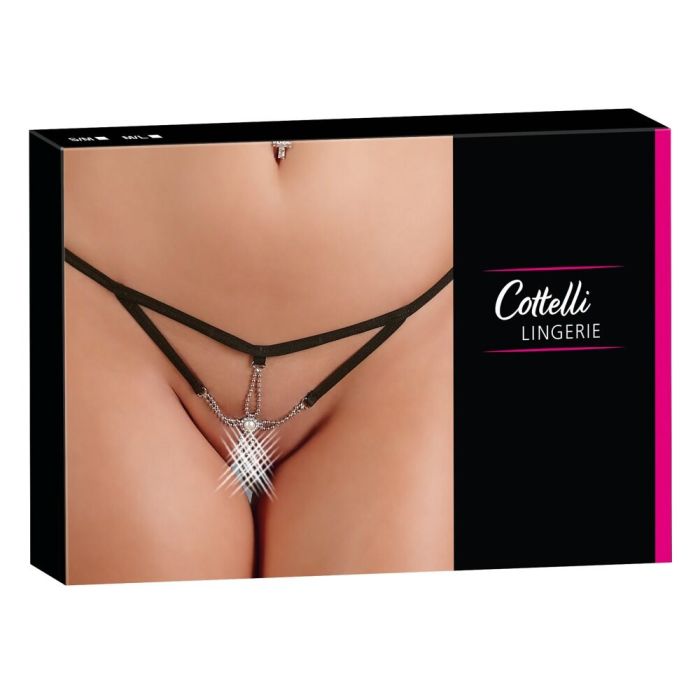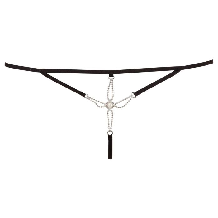 Deze exclusieve zwarte string van Cottelli Collection bestaat uit dunne bandjes en is voorzien van een prachtig sieraad. De dunne spaghetti bandjes zitten comfortabel en de versiering aan de voorkant nodigt je partner uit jou aan te raken. Wil jij je partner uitdagen tot een wilde nacht, dan trek je gauw deze string met parel aan.