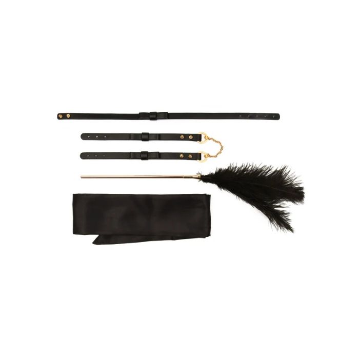 De TABOOM Desires Tease Bondage Set is een 4-delige set die perfect is voor koppels die hun intieme momenten willen verrijken. Deze set bevat een verleidelijke halsband die je partner in de juiste stemming brengt, flirterige polsboeien die zowel comfort als spanning bieden, zijdezacht bondagelint voor een luxe ervaring en een verenkietelaar die van elke aanraking een sensuele ontdekking maakt. Of je nu beginner bent of al wat ervaring hebt, deze set is de ideale manier om samen nieuwe fantasieën te verkennen en de spanning op te bouwen.