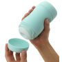 door de beker te knijpen, wat zorgt voor een gepersonaliseerde en