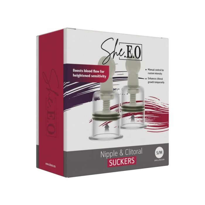 De Tepel- en Clitoriszuigers van She.EO! Deze unieke collectie is speciaal ontworpen om je zintuigen te prikkelen en je ervaring naar een hoger niveau te tillen. Met een instelbare zuigkracht kun je de stimulatie perfect afstemmen op jouw wensen, waardoor je de gevoeligheid van je tepels of clitoris kunt verhogen. Plaats de zuigers eenvoudig op de gewenste plek, draai aan de knop en laat je verrassen door de intense sensaties die volgen. Of je nu op zoek bent naar een subtiele opwinding of een krachtige climax, deze pompen bieden de mogelijkheid om je ervaring volledig te personaliseren voor ultieme bevrediging. Verwen jezelf of je partner en laat de passie stromen met deze innovatieve speeltjes!