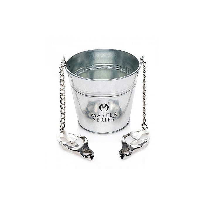 De Tepel en Vagina Klemmen met Emmer is het perfecte BDSM-accessoire voor geile games met je partner. Het combineren van het ontwerp van klassieke klaverklemmen met een emmer die aan kettingen hangt is goed over nagedacht. Des te meer gewicht je toevoegt, des te harder de tepelklemmen zullen trekken en hangen . Plaag je sub met elke steen, munt of druppel water die de emmer in gaat. Dit geile bdsm speeltje is perfect voor tepels of schaamlippen, maar kan overal worden gebruikt waar jij maar wilt!