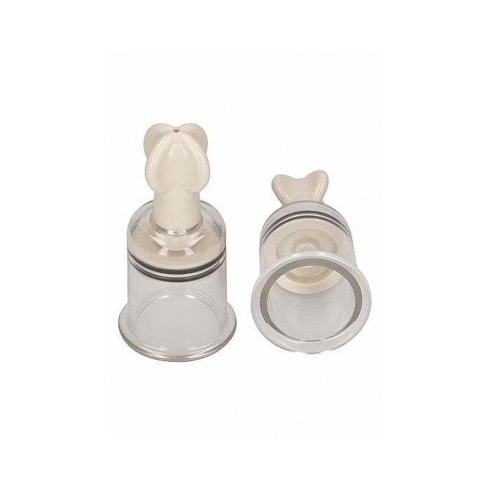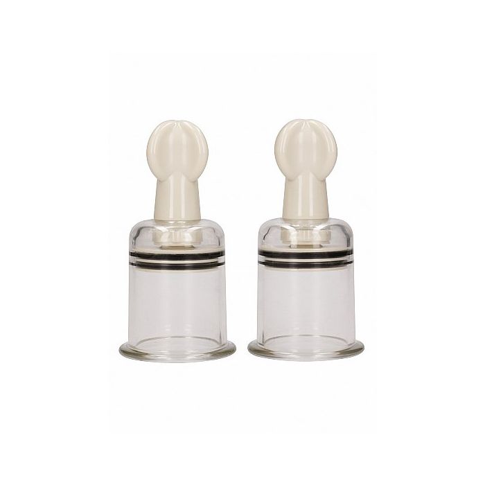 Deze zuigers zijn perfect voor vrouwen met wat grotere tepels en ook voor mannen omdat ze wat groter zijn dan normaal. Zet je tepels in de schijnwerpers met deze krachtige tepelzuigers van OUCH! Door het gebruik van de tepelzuigers zullen je tepels prominent naar voren staan en prikken bijna door je shirt heen voor een geweldig sexy look. Gebruik ze 1 voor 1, zet de cup om je tepel, zorg dat er geen lucht bij komt en trek de hendel naar achteren. Door het transparante materiaal zie jij je tepel naar voren komen. Herhaal dit bij de andere tepel en laat ze even zitten tot jij vindt dat ze lekker stijf zijn.