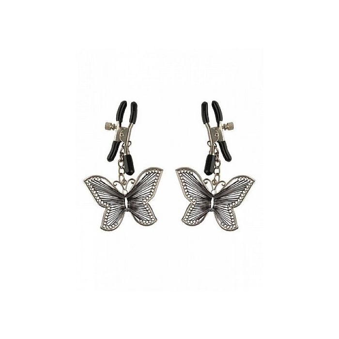 Laat je tepels groeien van genot met deze beginners tepelklemmen met vlinders. Gemaakt van duurzaam metalen clips die bedekt zijn met zachte rubberen covers, deze klemmen zijn perfect voor zowel beginners als echte fetish liefhebbers. De hoeveelheid druk die jij op de tepel toepast, is instelbaar door de schroef aan te draaien, terwijl de vlinders jou subtiele stimulatie bij elke beweging geven.