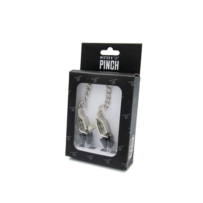 De Tepelklemmen Pinch Alligator Clamps van Mister B zijn vernoemd naar de alligator, als ze op je tiet kauwen, laten ze niet meer los! Deze knijpers zijn met schroeven verstelbaar, zo kun je zelf bepalen hoeveel druk je uitoefent. De klemmen hebben zachte plastic doppen die verzachten de impact van de klemmen. Verder worden de klemmen aan elkaar verbonden door een ketting.
