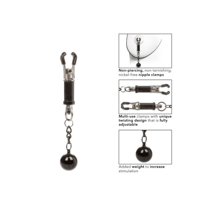 Zoek je grenzen op met de Tepelklemmen Twist met gewichten van CalExotics. Met deze twee Tepelklemmen ontdek je een verhoogd gevoel. Ze hebben een uniek gedraaid ontwerp en zwaaiend gewicht. Perfect voor een kinky avond!