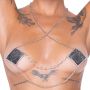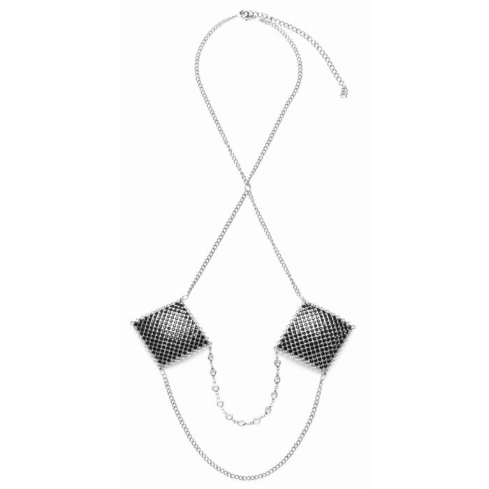 Maak een onvergetelijke indruk met de sensuele zilverkleurige vierkante tepelstickers van Cottelli ACCESSOIRES. Deze opvallende accessoires zijn niet alleen een lust voor het oog, maar ook een statement van zelfvertrouwen en stijl. Versierd met glinsterende diamanten en elegante zwarte strass-steentjes, stralen ze luxe en verfijning uit. De stickers zijn verbonden door een choker en twee slingerende kettingen, waarvan er één prachtig is bezet met strass-steentjes, wat zorgt voor een extra sprankeling. Dankzij het zelfklevende ontwerp zijn ze eenvoudig aan te brengen en herbruikbaar, mits je de beschermfolie opnieuw aanbrengt voor opslag. Perfect voor een speciale gelegenheid of om jezelf gewoon te verwennen, deze tepelstickers zijn de ideale manier om je outfit een gedurfde en verleidelijke touch te geven. Voeg ze toe aan je collectie en laat je innerlijke diva stralen!