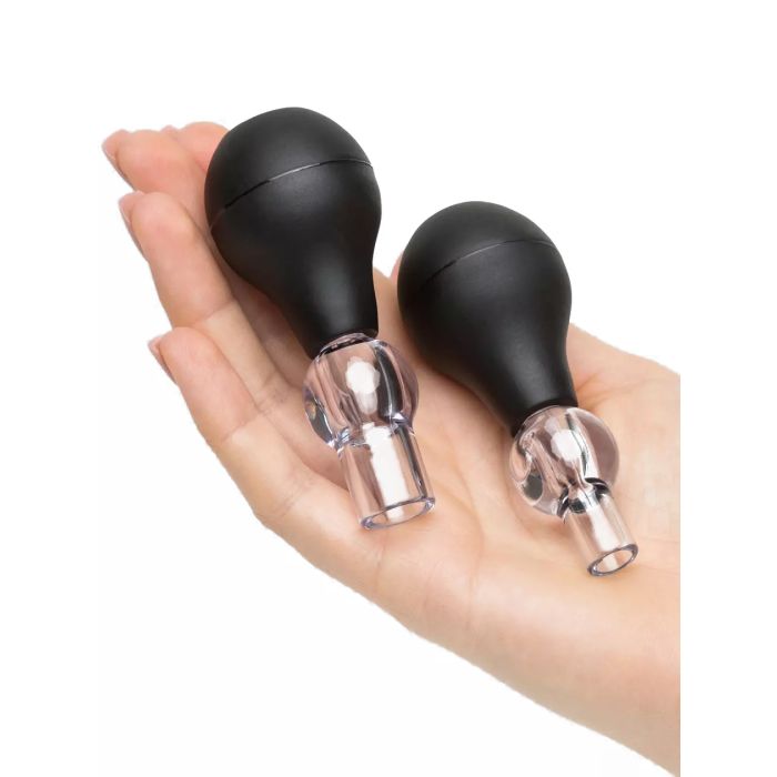 Met Nipple Pump tepelzuigers houd je je tepels lekker stijf en gevoelig. Dit speeltje is zeer eenvoudig in gebruik. Neem om te beginnen de pomp met de kleine opening. Schuif de rubberen ring van jouw keuze over de opening en plaats de opening over je tepel. Knijp vervolgens in het luchtreservoir totdat je het gewenste resultaat hebt bereikt. Dan schuif je de rubberen ring over je tepel zodat hij hard blijft. Om je tepels nóg harder te maken, gebruik je de pomp met de bredere opening. Je partner zal super opgewonden van jouw harde tepels, terwijl elke aanraking voor jou veel intenser en gevoeliger is. Deze Nipple Pump set is voorzien van maar liefst 8 verschillende tepelringen.