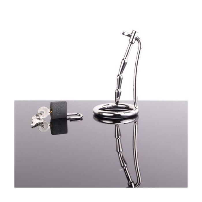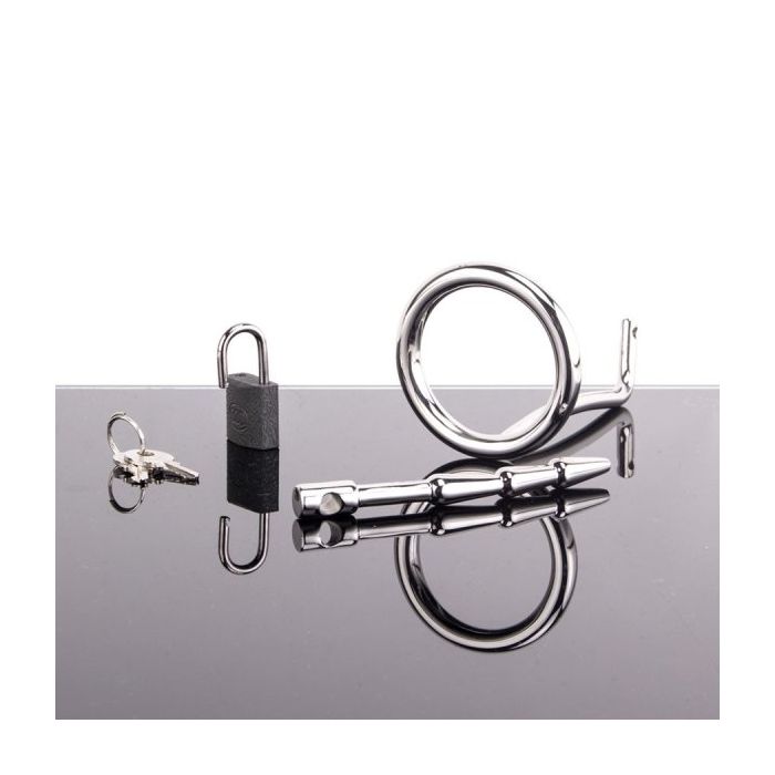 Sluit je penis op met deze geweldig stoere cock trap en ervaar een heerlijk gevoel van opgesloten zitten. Jij schuift de cockring om je penis heen, helemaal naar achteren en vervolgens is je plasbuis aan de beurt. Deze schuif jij ribbel voor ribbel de plasbuis in tot hij evenredig staat met het uiteinde van de cockring. Schuif het slotje erdoorheen en geef de sleutel uit handen. Er zijn twee sleutels meegeleverd maar zorg gewoon dat je ze nooit kwijt raakt.