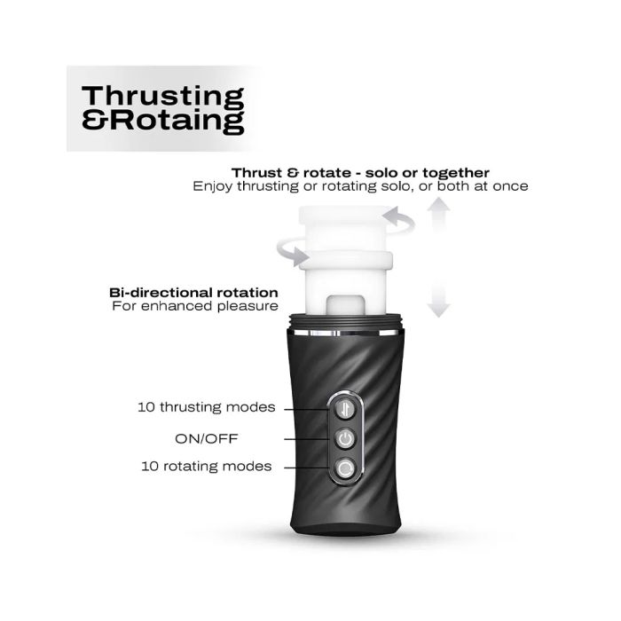 Deze automatische masturbator biedt je de mogelijkheid om je volledig te laten onderdompelen in een wereld van plezier, met krachtige, ritmische stoten die precies de juiste plekken raken. De bi-directionele rotatie geeft je de vrijheid om te kiezen tussen verschillende bewegingen – met de klok mee, tegen de klok in of een afwisselend patroon – zodat je elke keer weer een unieke ervaring beleeft. Met maar liefst 10 stootstanden en 10 roterende standen heb je eindeloze variatie binnen handbereik.