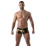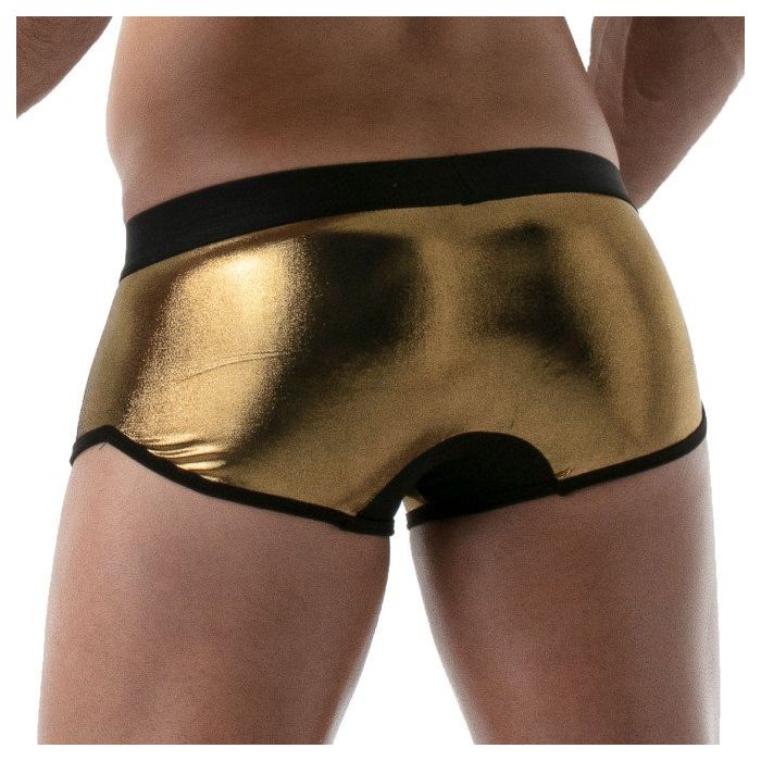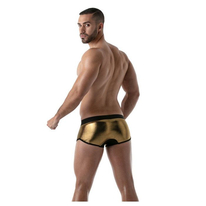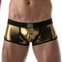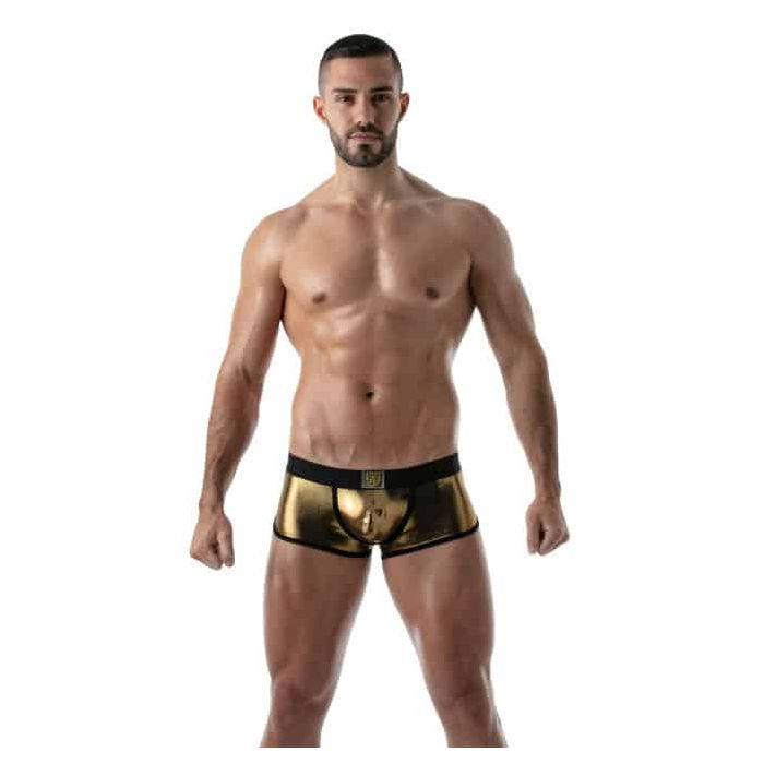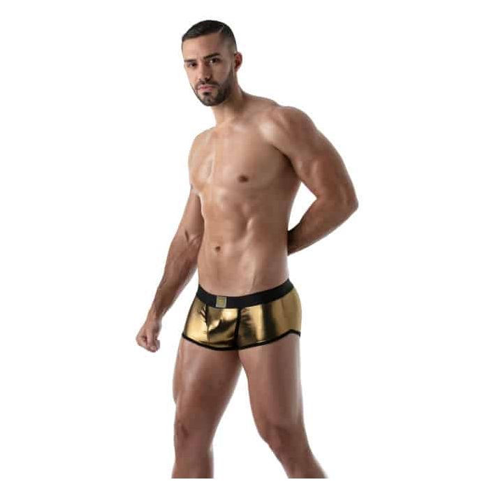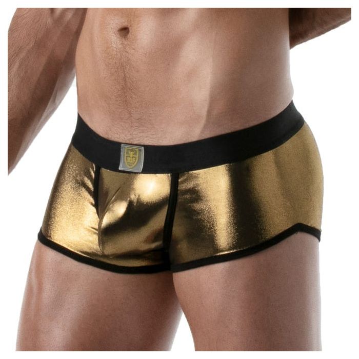 De TOF Paris Metal Trunk - Goud is een strakke nauwsluitende trunk gemaakt van zachte materialen. Deze trunk is heerlijk glad en dun en zit als gegoten. Het zachte materiaal zorgt ervoor dat de boxershort een hoog draagcomfort heeft en dankzij de gouden kleur krijgt de boxershort een extravagante look.
