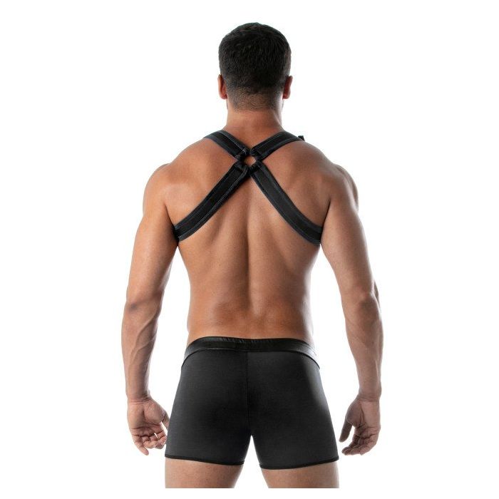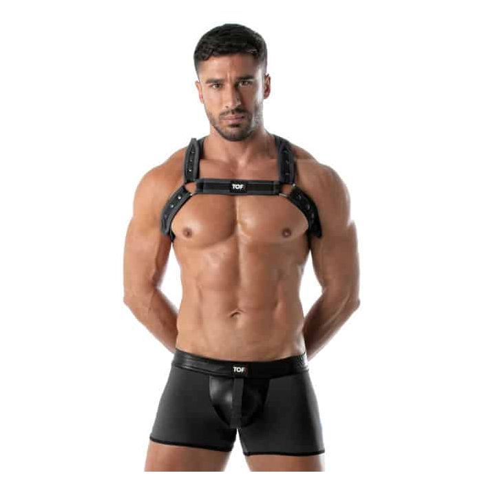 Maak je nachten nog spannender met het dragen van het TOF Paris Neopreen Bulldog Harnas - Zwart. Dit harnas is geheel gemaakt van stoer neopreen materiaal. Het harnas heeft op de rug een X-model voor een comfortabele pasvorm en geaccentueerde schouders en een H-model aan de voorkant. Kortom, maak je feestelijke outfit compleet met het dragen van de TOF Paris Neopreen Bulldog Harnas - Zwart.