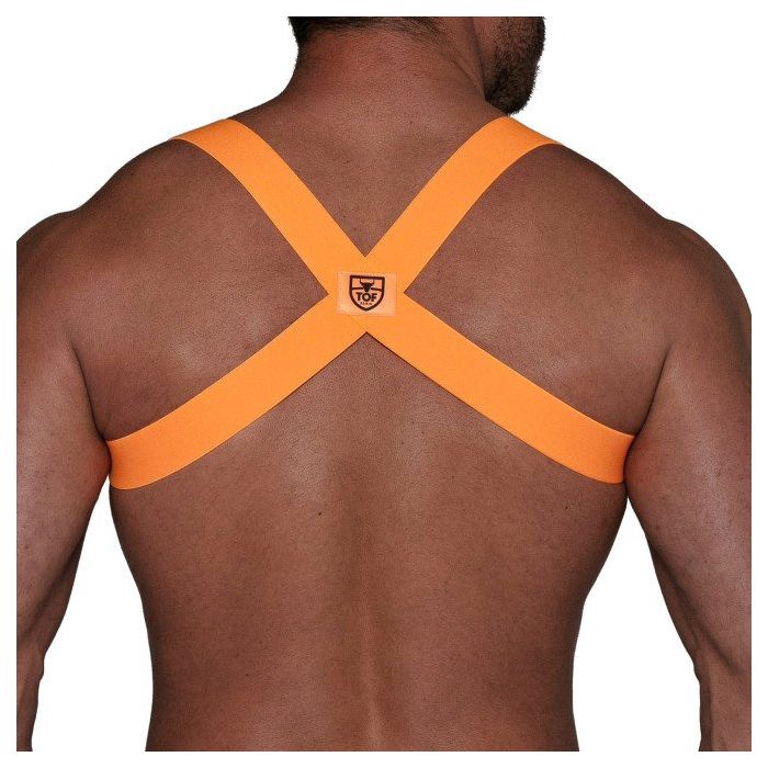Het is tijd om het feestje compleet te maken en jouw gespierde schouders nog breder lijken in het TOF Paris Party Boy Harnas - Neon Oranje. Dit harnas is geheel gemaakt van elastische banden. Op de achterkant is het TOF embleem aangebracht. Het harnas heeft op de rug een X-model voor een comfortabele pasvorm en geaccentueerde schouders.