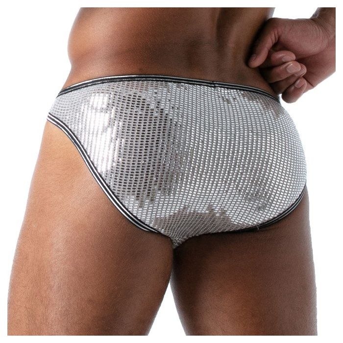 In de TOF Paris Star Bikini Brief - Zilver laat jij je van jou meest sexy kant zien! Deze strakke slip met laag bikini model is geheel gemaakt van super zachte stoffen. Het broekje is heerlijk luchtig en voorzien van stretch voor een perfecte pasvorm. De comfortabele buidel biedt voldoende ruimte. Combineer de bikini brief eenvoudig met andere kinky items voor een geweldige look.