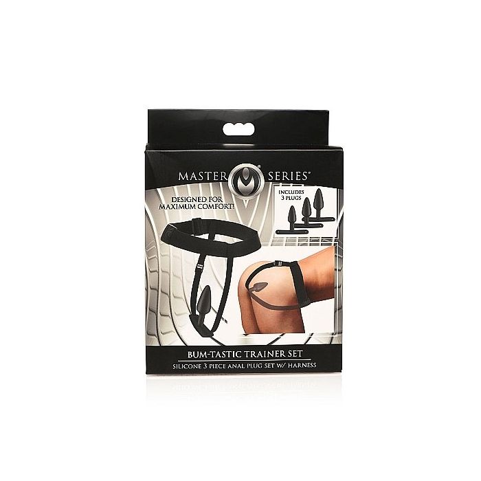 De Trainerset P-Spot Bum-Tastic van het merk Master Series wordt geleverd met 3 anaal plugs van verschillende groottes, die je eenvoudig kunt dragen met het harnas. Breng de plug in met een beetje glijmiddel op waterbasis. Maak de buttplugs na gebruik goed schoon met één van onze toycleaners.
