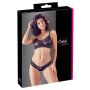 De Trendy BH en String - Zwart van Cottelli Collection is een 2-delige set bestaande uit een bralette top en een Brazilian string. De top en string zijn geheel gemaakt van bloemen kant met een prettige rekbaarheid. De bralette top geeft door de kanten cups zonder voering en zonder beugels een natuurlijk gevormde boezem. De top heeft stretch bandjes die op de rug zijn gekruist. De Brazilian string heeft een rijgdetail voor en achter.