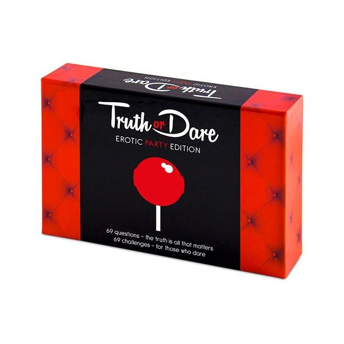 Sexy bodysuit aan, de delay serum xtra time bij de hand en je bent helemaal klaar voor een sexy avondje spelen met vrienden. Deze truth-or-dare-party edition kan hierbij natuurlijk niet ontbreken. Dit erotische spel bestaat uit 69 zinderende vragen en sexy opdrachten. Ben benieuwd welke jouw favo is. Een spannend voorspel dat je met 3 of meer personen kunt spelen, gegarandeerd loopt het uit op een zinderend nachtje vol met opwindende ontdekkingen. Wil je wat extra toys toevoegen aan je avondje vol plezier? Bekijk dan ook ons harnas met cockring en buttplug of die uitdagende rode enkelboeien en die hog-tie. Misschien ook alvast bestellen?