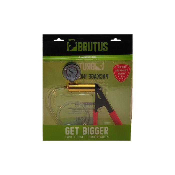 De Universele Penispomp Brutus Get Bigger is een hoogwaardige metalen handpomp die geschikt is voor alle merken luxe pompsystemen voor penisvergroting. Denk aan de merken Dr. Kaplan of LAPD. Hij ligt prettig in de hand en is gemakkelijk met één hand te bedienen, zodat jij met je andere hand het cilinder op zijn plek kan houden of om andere spannende dingen te doen. Met de handige manometer bouw je nauwkeurig het gewenste vacuüm op. Onthoud hiervoor de druk of schrijf deze op zodat je de volgende keer iets verder kan gaan. De koppeling is voorzien van een afsluiter zodat het vacuüm van de pomp na afkoppeling blijft bestaan. Hierdoor kan jij de cilinder makkelijk laten zitten.