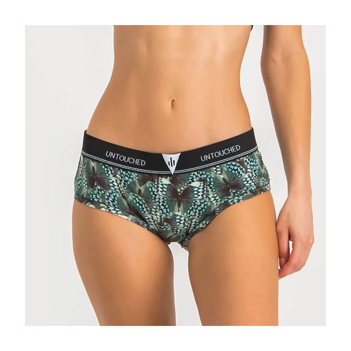 In de Untouched Jungle Queen Hipster voel jij je een krachtige queen die de wereld aan kan! Deze hipster heeft een nauwlsuitende pasvorm en een stevige elastische tailleband. De tailleband is zwart en heeft een witte Untouched opdruk en geeft een sportieve uitstraling.