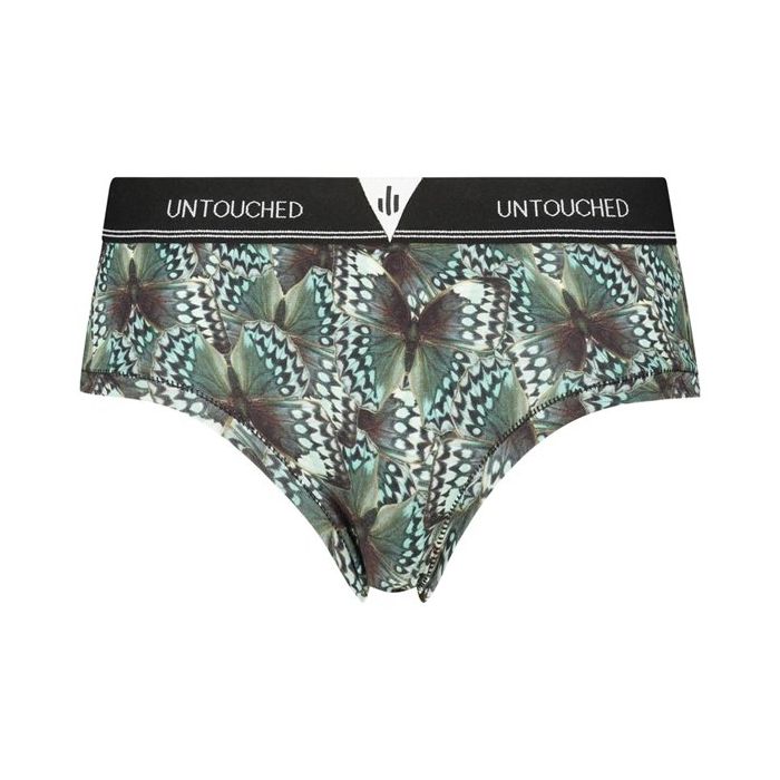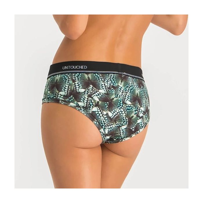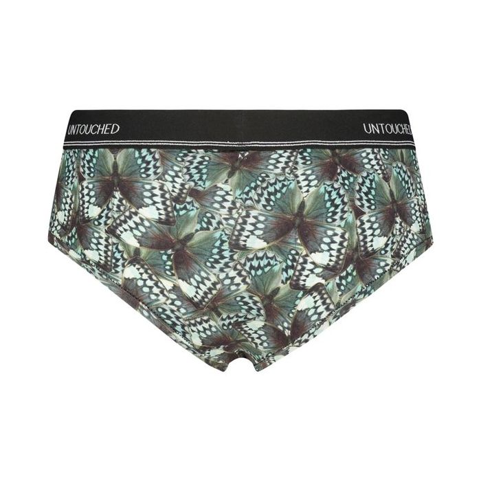 De hipster is gemaakt van duurzaam en milieubewuste materialen die heerlijk zacht en soepel aanvoelen. De stof is bedrukt met een kleurrijke fotoprint van groene vlinder. De fotoprint is slijtvast en blijft dus lang mooi.
