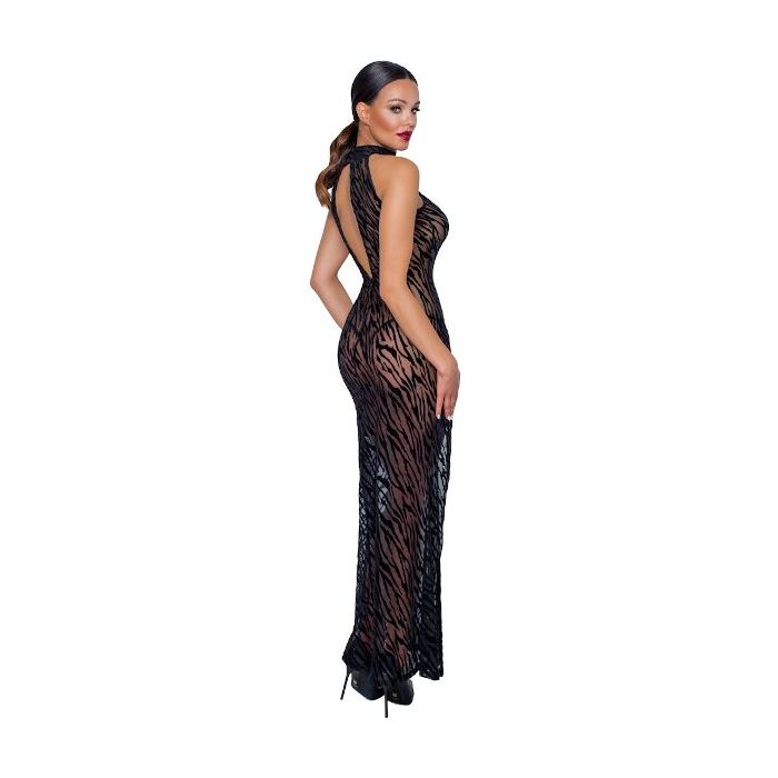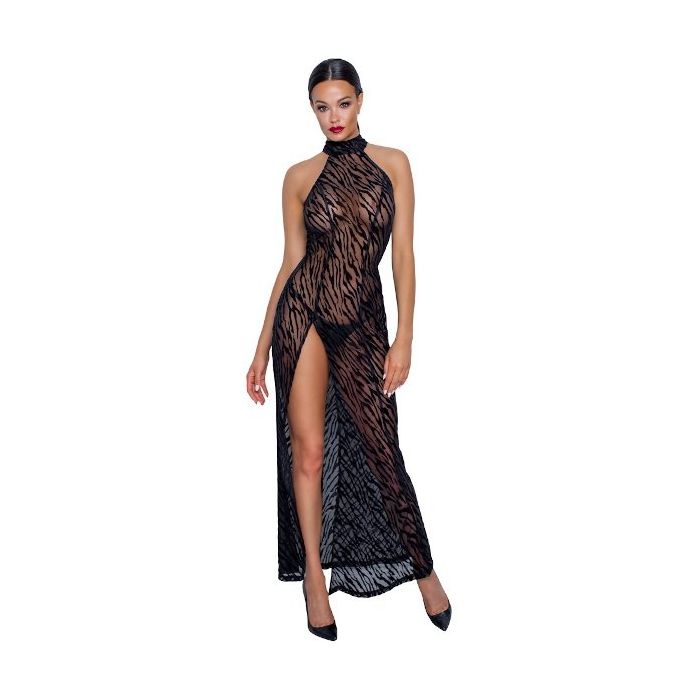 You look purrrfect! En al helemaal in de Velvet Tiger Lange Jurk van Noir Handmade. In deze luxe en lange jurk ben jij klaar om de stad onveilig te maken met jouw gevaarlijk lekkere looks. De jurk is geheel gemaakt van powernet micro mesh en is elegant lang, met een stijlvol halter model met opstaand kraagje.