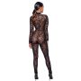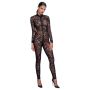 Het semi-transparante micro mesh laat niets aan de verbeelding over. Op het mesh is een zachte velours Flock Print aangebracht in een spannend tijger strepen patroon. De jumpsuit heeft een lang model met een elegant opstaand kraagje. Vanaf het opstaande kraagje loopt er een 2-way rits over de voorkant naar beneden, over het kruis en door naar de onderrug voor easy access!
