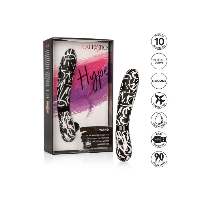 Laat je verleiden door deze opvallende eyecatcher van CalExotics. Deze Hype Dual Wand vibrator is een vibrator die je heerlijk en intens zal verwennen en er ook nog eens super leuk uitziet! Een musthave voor elke vrouw die uiterlijk net zo belangrijk als innerlijk vindt. De Hype Dual Wand met grafisch zwart-wit printje is gemaakt van zacht siliconen en heeft een gebogen kop om precies de juiste plek te raken. Ontdek de 10 verschillende vibratiestanden die jou gegarandeerd een explosief en onvergetelijk hoogtepunt zullen bezorgen. Alle vibraties zijn gemakkelijk te bedienen met het push button systeem en je kunt hem zonder problemen met je meenemen onder de douche of in bad. Laad hem na gebruik weer eenvoudig op met bijgeleverde USB-kabel.
