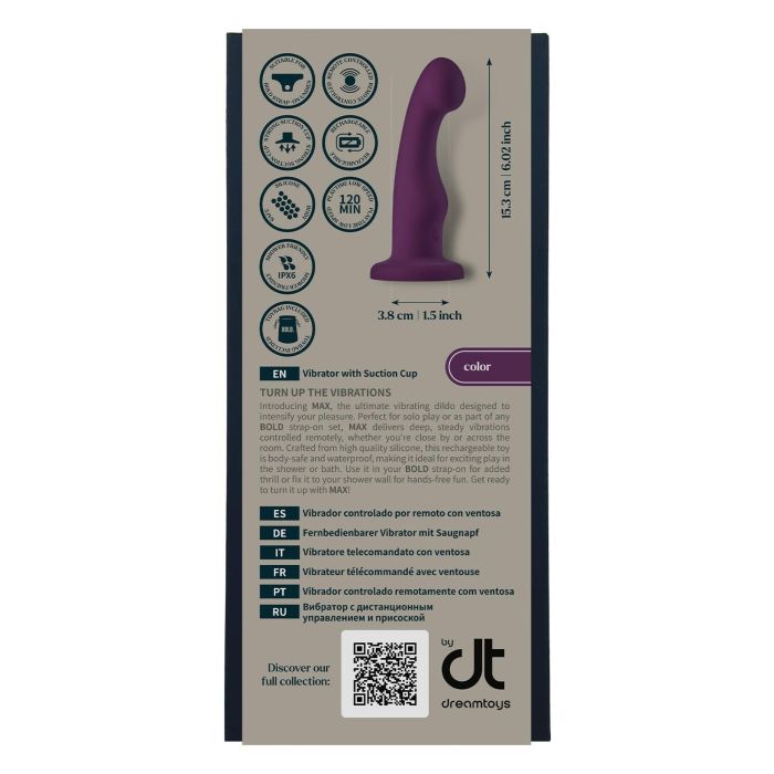 De MAX vibrator met afstandsbediening is speciaal ontworpen om je genot naar ongekende hoogtes te tillen, of je nu alleen speelt of samen met een partner. Met de handige afstandsbediening kun je de intense vibraties eenvoudig regelen, zelfs van een afstand. Gemaakt van hoogwaardige, lichaamsveilige siliconen, voelt MAX zijdezacht aan op je huid en is volledig waterdicht, waardoor je ook onder de douche of in bad kunt genieten van een verfrissende ervaring. Combineer hem met je favoriete BOLD strap-on voor extra intensiteit of plak hem op een glad oppervlak voor handsfree plezier. Oplaadbaar en veelzijdig, MAX is altijd klaar voor avontuur. Bereid je voor om je zintuigen te prikkelen en je plezier naar een hoger niveau te tillen met MAX!