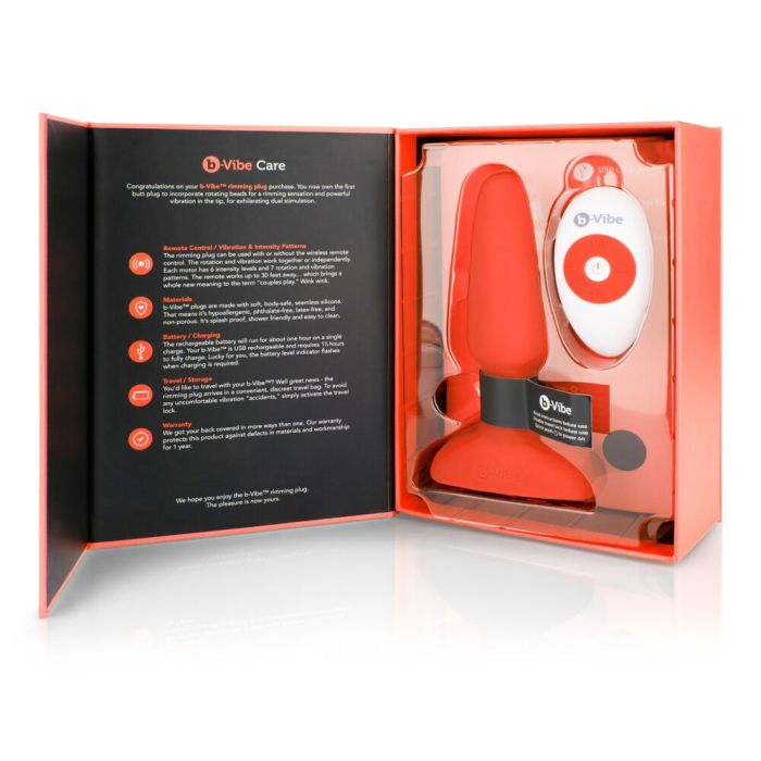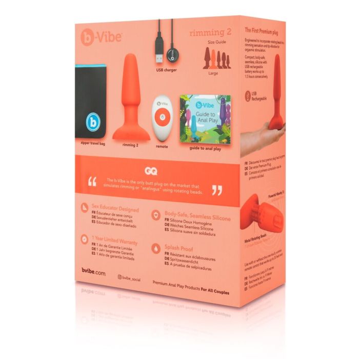 De vibrerende buttplug Rimming 2 van b-Vibe is ontworpen om je anale ervaringen naar een hoger niveau te tillen met roterende massagekralen in de taper die zorgen voor een sensatie die je doet denken aan de beste rimbeurt. Maar dat is nog niet alles! De krachtige vibraties in de tip stimuleren je anale kanaal voor een dubbel genot dat je niet wilt missen. Met 2 stille, krachtige motoren en maar liefst 7 rotatie- en 6 vibratiestanden, allemaal eenvoudig te bedienen met de handige afstandsbediening, kun je de perfecte combinatie van sensaties vinden. Of je nu alleen speelt of samen met je partner, het bereik van 9 meter zorgt ervoor dat je de controle in handen hebt, waar je ook bent. Gemaakt van zijdezacht siliconen en met een conische vorm, is deze vibrerende buttplug gemakkelijk in te brengen en blijft hij perfect op zijn plaats dankzij de brede, anaalveilige basis. En met de bijgeleverde USB-oplaadkabel en een stijlvol opbergtasje, ben je altijd klaar voor een avontuur vol plezier!