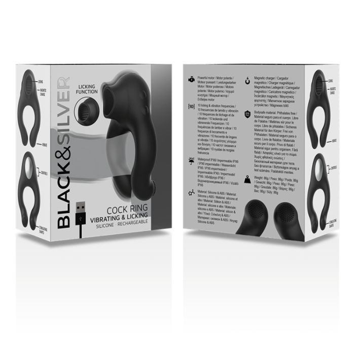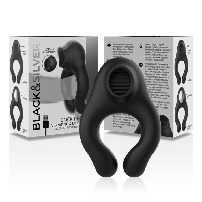 Voor haar is de Black&Silver™ Licking een waar genot, met kleine lijntjes die over het zachte, gestructureerde middengedeelte bewegen en meebewegen met de trillingen. Dit zorgt voor een unieke en bevredigende ervaring die je niet wilt missen. Voor hem is de cockring ontworpen voor langdurige stimulatie en extra opwinding. De combinatie van flexibiliteit en stevigheid tilt het lid voorzichtig op, wat de erectie verbetert en zorgt voor een stevige ondersteuning aan de basis. Het gebruik is eenvoudig: plaats de flexibele banden over de basis van je penis en pas deze aan voor optimaal comfort. Met één druk op de slim geplaatste dubbele knoppen aan weerszijden van de ring activeer je een intense golf van pulsaties, wat leidt tot een extreem erotische ervaring.
