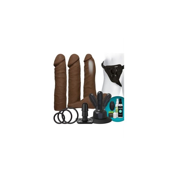 De Vac-U-Lock Deluxe-sets van Doc Johnson bieden de ultieme strap-on-ervaring. Met de Vac-U-Lock Dual Density ULTRASKYN-set krijg je een complete set met verschillende opties. De set bevat een harnas met verwijderbare O-ringen, een oplaadbare, vibrerende Vac-U met 7 functies en een afstandsbediening, drie realistische ULTRASKYN-hulpstukken en een fles Mood-glijmiddel op waterbasis.