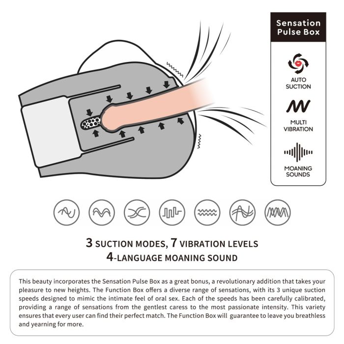 Maak kennis met de Streetgirl's Masturbator, een meesterwerk van design en functionaliteit dat je intieme ervaringen naar ongekende hoogten tilt. Dit prachtig ontworpen genotsapparaat heeft een realistische, gespreide vagina die je zintuigen prikkelt vanaf het eerste moment. Met afmetingen van 20,4 x 24 x 14,5 cm en een gewicht van 2,67 kg is deze elegante beauty gebouwd om jarenlang intens genot te bieden. De Sensation Pulse Box, een revolutionaire toevoeging, biedt een scala aan sensaties met drie unieke zuigsnelheden die de intieme ervaring van orale seks perfect nabootsen. Of je nu op zoek bent naar een zachte streling of een passionele climax, deze functie garandeert dat je elke keer weer buiten adem raakt en verlangt naar meer. Met realistische kreungeluiden en zeven vibratiestanden zorgt de Sensation Pulse Box voor een werkelijk verbluffende ervaring. En het schoonmaken? Een fluitje van een cent! Verwijder eenvoudig de Sensation Box, spoel het kanaal af met stromend water en je bent klaar voor het volgende avontuur. Vergeet niet om voldoende glijmiddel te gebruiken voor een moeiteloze ervaring. Dit is de ultieme manier om jezelf te verwennen!