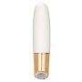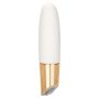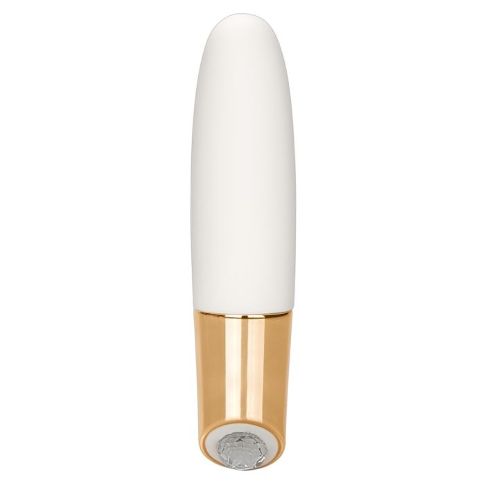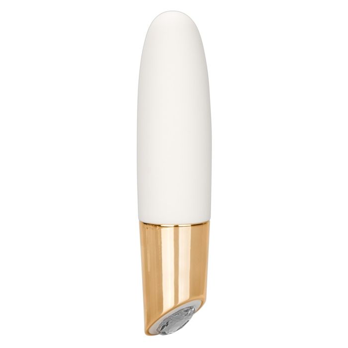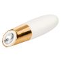 Voor in je handtas en om overal mee naar toe te nemen. Deze geweldige mini vibrator is compact en discreet en zal overal mee naar toe kunnen worden genomen. Elke vrouw houdt van luxe en daar heeft Jopen op ingespeeld door deze schitterende vibrator te ontwerpen met oog voor klasse en uitstraling. Hij is zelfs door cosmopolitan uitgeroepen tot meest stylish ontwerp. Gemaakt van heerlijk zacht wit siliconen materiaal zal die zijdezacht aanvoelen op de huid. De onderkant is afgewerkt in prachtig goud met als pushbutton een fonkelende diamant. De vibrator is oplaadbaar met het meegeleverde usb kabeltje. De vibrator zal jou verwennen met wel 7 verschillende standjes en heeft zeer krachtige vibraties. Hij is volledig opgeladen na twee uur. Op de hoogste stand zal die een gebruikerstijd hebben van een uur en op de laagste stand een gebruikerstijd van 2 uur. Om aan en uit te schakelen dien je de power knop 3 seconden in te drukken. Om te schakelen tussen de diverse standjes volstaat 1 simpele druk op de knop. Maak de schacht voor en na elk gebruik goed schoon onder de kraan met een milde zeep en toycleaner.