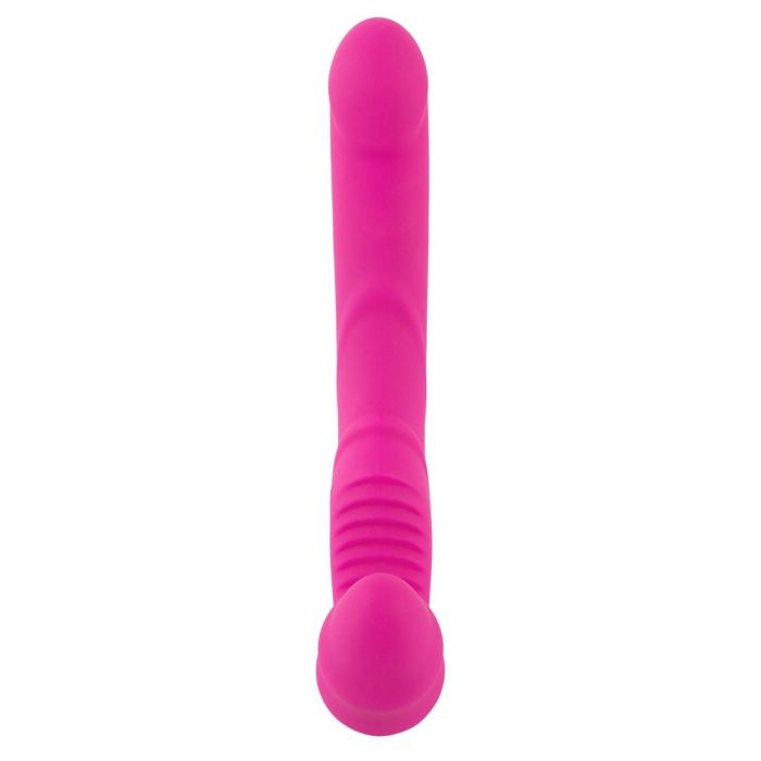 Deze dubbele vibrator is perfect voor zowel individueel gebruik als voor koppels! Het heeft een strapless ontwerp met een flexibele dubbele vibrator. De korte vibrator met duidelijke golven wordt ingebracht in de vagina en op zijn plaats gehouden door de vaginale spieren. Op deze manier kan de partner genieten van de langere, stimulerende vibrator.