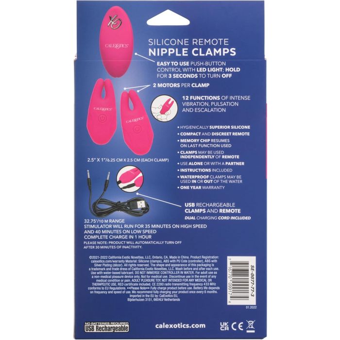 Vibrerende Tepelklemmen Met Afstandsbediening CalExotics - Roze
