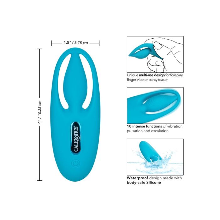 De Vinger Vibrator The Orgasm Vibe - Blauw brengt knieschuddend genot binnen handbereik! De ergonomische, multifunctionele vibrator zal zeker opwinden met nauwkeurige stimulatie en volledig dekkende vibraties. De Vinger Vibrator The Orgasm Vibe - Blauw verwent je met 10 vibratiefuncties en een uniek multifunctioneel ontwerp voor een veelzijdig spel. Verhoog het voorspel met de plagende, veelzijdige vibrator die kan worden gebruikt als vingervibe, panty-teaser en nog veel meer. Vind je favoriete instelling met een druk op de knop terwijl je door 10 krachtige functies van vibratie en pulsatie bladert.