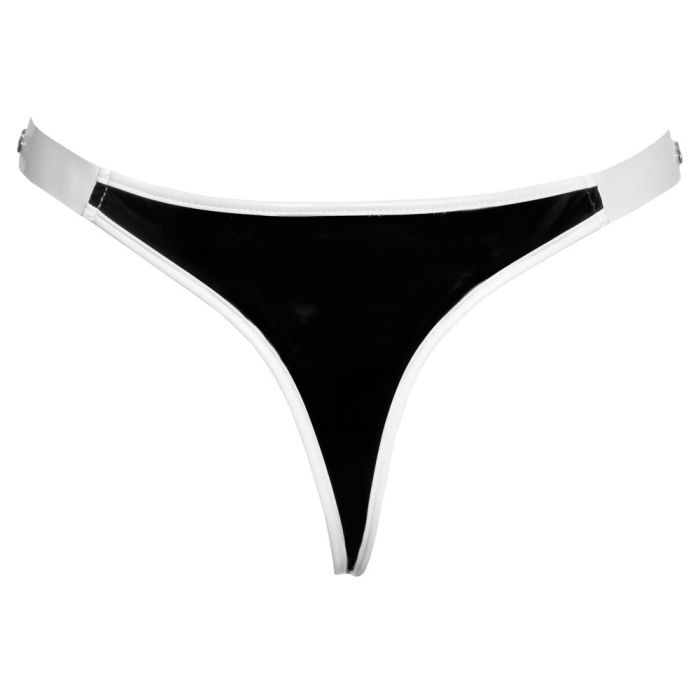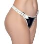 Ontdek een geweldige string gemaakt van zacht vinyl met gespen. Aan elke zijkant bevindt zich een verstelbare gespsluitingen voor dé perfecte pasvorm met een hoog draagcomfort. De string is gemaakt van 100% polyester, polyurethaan coating.