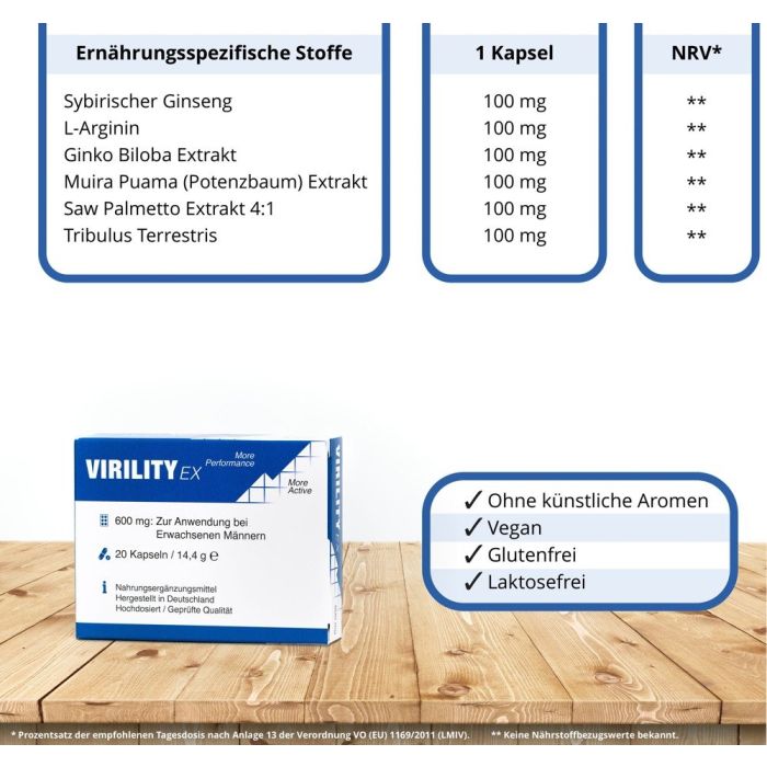 De Viriliteit Libido Boost Voedingssupplement is hoog gedoseerd voor de actieve man! Dit voedingssupplement is een natuurlijk alternatief van geselecteerde extracten in een complexe formule. Eén capsule bevat 600 mg extractmengsel van 6 ingrediënten: