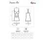 De chemise is gemaakt van glanzend satijn dat soepel valt. Het lijfje is gemaakt van doorschijnend bloemen kant en heeft een korset look. Onderaan het jurkje is een brede boord van kant gemaakt. De smalle schouderbandjes zijn verstelbaar en lopen gekruist over de rug. Bij de chemise wordt een bijpassende string geleverd.