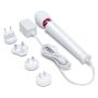 De wand vibrator Powerful Petite Plug-In wordt op betrouwbare wijze non-stop rechtstreeks van stroom voorzien via de extra lange stekkerkabel. Meegeleverd worden 4 verschillende stopcontactadapters zodat de massagestok wereldwijd gebruikt kan worden. Perfect om mee te nemen op reis! Er wordt ook een hoogwaardige opbergtas meegeleverd.