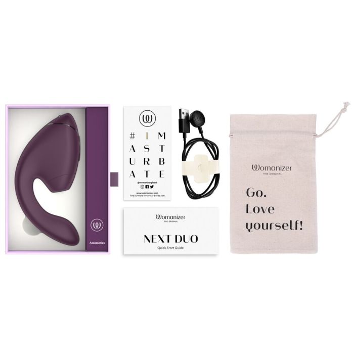 Dankzij de aparte motorbediening kun je de stimulatie onafhankelijk van elkaar regelen, terwijl de intuïtieve interface zorgt voor een moeiteloze bediening. Met Smart Silence start de Next Duo pas als hij in contact komt met je huid, wat zorgt voor een bijna geruisloze ervaring. En als je klaar bent, zorgt de afterglow-functie voor een ontspannen einde door het apparaat automatisch naar het laagste niveau te zetten. Deze elegante en trendy stimulator is volledig waterdicht, waardoor je hem ook in bad of onder de douche kunt gebruiken. Met een zijdezacht siliconen oppervlak en een ergonomisch ontwerp past hij perfect aan de vrouwelijke anatomie. Inclusief een USB-oplaadkabel, opbergtasje en twee vervangbare opzetstukken in verschillende maten, is de Womanizer Next Duo de perfecte metgezel voor intense, persoonlijke momenten van genot die je nog lang bijblijven!